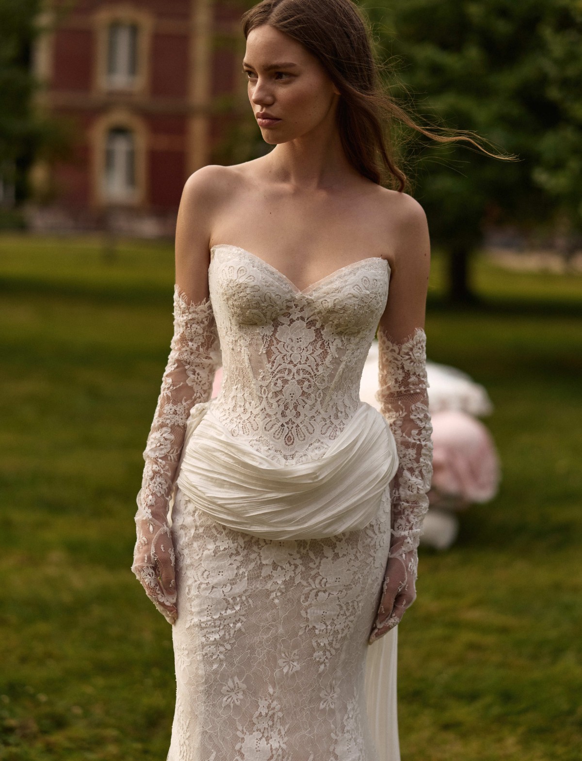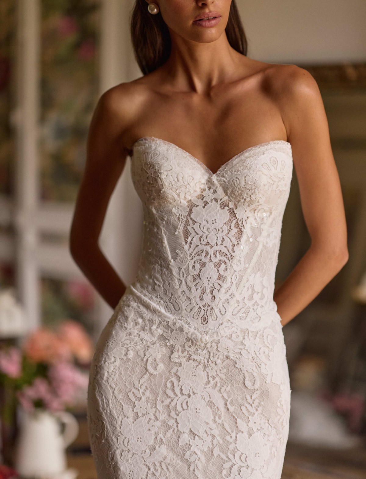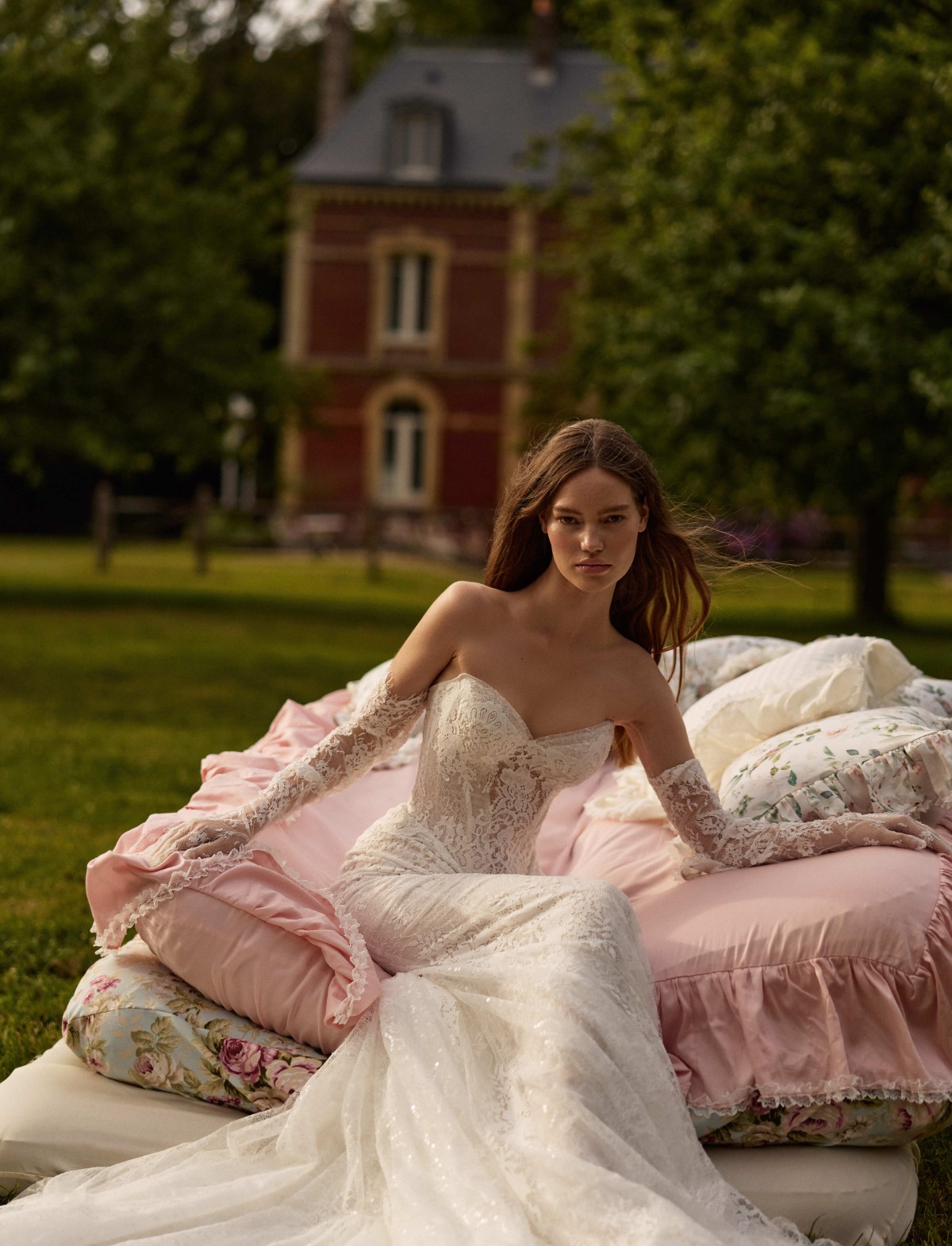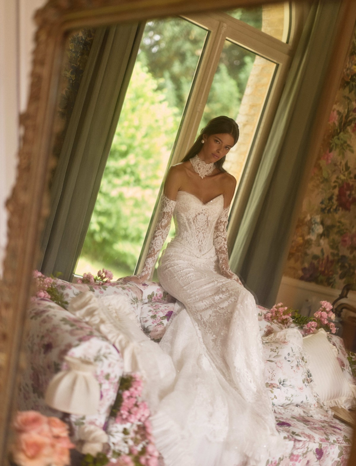 L’abito da sposa Avenara di Millanova Le Maison Rose, disponibile presso l’Atelier Le Spose di Mori, è l’essenza del romanticismo moderno. Questo vestito da sposa principesco incanta con una silhouette A-line che combina volumi fiabeschi e dettagli sartoriali d’eccellenza. Il raffinato corpetto steccato, con scollo a cuore e delicate trasparenze, è impreziosito da lussuosi ricami in pizzo e applicazioni floreali che sembrano sbocciare sul tessuto. La gonna ampia in leggerissimo tulle e organza dona un movimento etereo, perfetto per una sposa glamour che sogna un’atmosfera sofisticata. Un capolavoro di artigianalità pensato per chi desidera un’eleganza senza tempo.