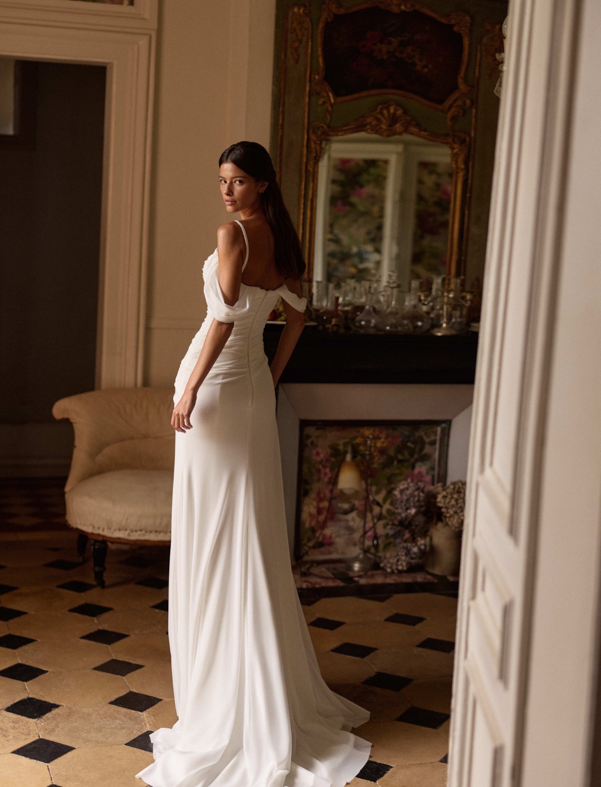 L’abito da sposa Glimmara di Milla Nova Le Maison Rose è un capolavoro di eleganza contemporanea e sensualità sussurrata. Questo vestito da sposa moderno incanta per la sua silhouette a sirena scivolata, realizzata in un pregiato tessuto di seta o crêpe che accarezza le forme con naturalezza.