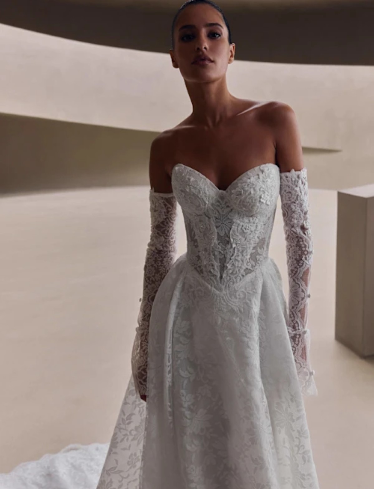 Scopri CALIVORA, l’abito da sposa firmato PRIMA FORMA che incarna un romanticismo moderno e sofisticato. Questo modello presenta un seducente corpetto steccato a cuore, che esalta la silhouette con maestria artigianale. La gonna ampia, sapientemente lavorata, si fonde con preziosi ricami in pizzo floreale che creano un effetto scenografico. I dettagli sartoriali, come le raffinate maniche in tulle ricamate, donano un tocco etereo e regale. Perfetto per la sposa che desidera un look principesco, iconico e indimenticabile.