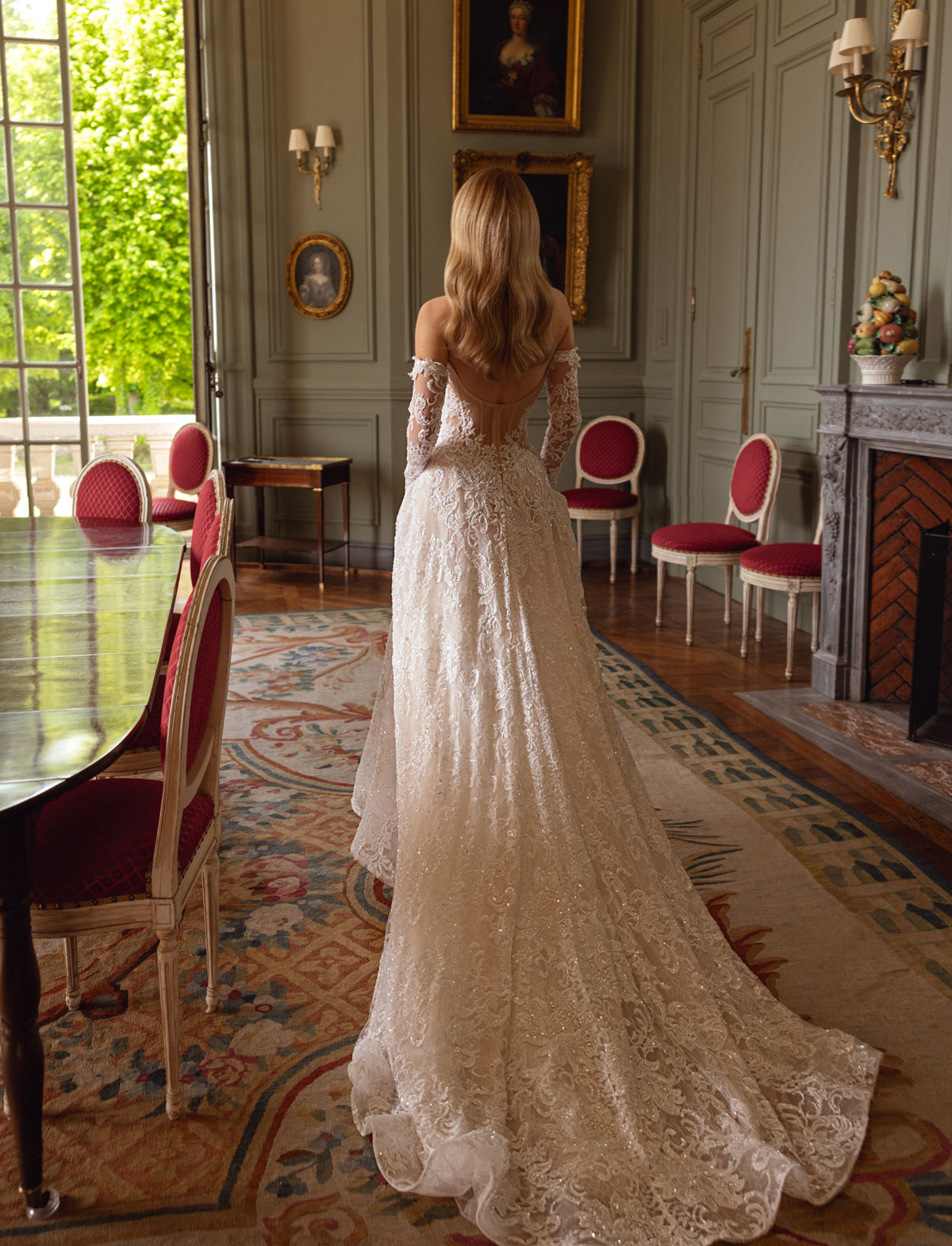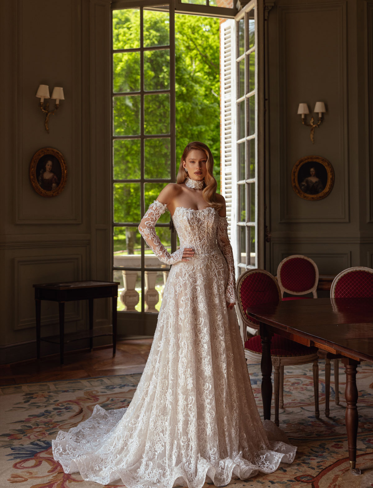 Preparati a brillare con KALA di TINA VALERDI, un abito da sposa moderno e glamour che incarna la perfetta unione tra audacia e raffinata eleganza. Questo vestito da sposa dalla silhouette a sirena, ricamato con un prezioso pizzo scintillante e perline, avvolge la figura con un’eleganza senza pari. Il corpetto off-shoulder, con un design bustier finemente steccato, si abbina a maniche lunghe ricamate, creando un look armonioso e lussuoso. Un dettaglio distintivo è il choker coordinato, che aggiunge un tocco di sofisticazione e originalità. KALA è l’abito da sposa ideale per la sposa che desidera stupire con un’eleganza contemporanea e una luce inconfondibile. Scopri l’esclusività di KALA presso l’Atelier Le Spose di Mori.